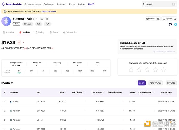 在撰写本文时,火币、Poloniex、Gate 和 BitCoke 已经上市了$ETF。毫不奇怪,这些都是基于中国的交易所。由于 Poloniex 是第一个声称支持 ETF 的交易所,孙宇晨无疑是幕后推动者。