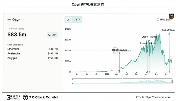 链上期权市场本就是加密期权在去中心化方向的新尝试,在从链上保险市场中独立后,在底层平台和结构化产品方向做出了诸多创新,在加密交易市场日益成熟、整体波动率趋于下降的背景下,不少平台都在探索更能面向用户的期权产品以满足市场需求,结构化产品风靡一时,根据Defillama的数据,截至2022年8月,链上期权产品已经有39个之多,结构化产品占比近80%。