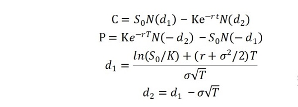 在以上假设的基础上,BSM给出以下公式:C0 = S0N(d1)–Xe-rTN(d2) Where d1 = [ln(S0/X) + (r + σ2/2)T]/σ√T And d2 = d1–σ√T