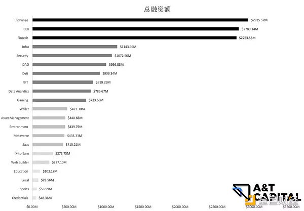 融资金额前三的类别:交易平台、中心化交易平台、金融科技。