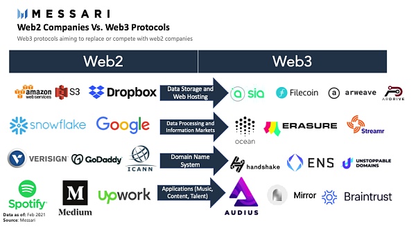 从 Web2 到 Web3: Web2 是建立在客户/服务器架构上的,所有数据都集中在服务器上。这些服务器属于控制用户和互联网的特定公司。