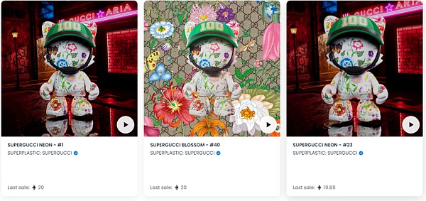 2021年,Gucci推出了名为「SUPERGUCCI」和「10KTF Gucci Grail」NFT系列,以及元宇宙商店「Gucci Vault」系列NFT。