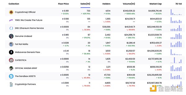 24小时内销售涨幅前十的NFT 数据来源:NFTGO
