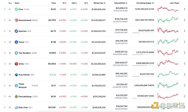 NFT总市值、市值排名前十项目 数据来源:Coinmarketcap
