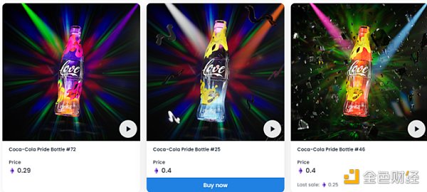 今年 7 月,可口可乐与 3D 虚拟化身应用平台 Tafi 合作,以庆祝国际友人日(The International FriendshipDay)为主题推出一系列 NFT,包括 Coca-Cola? Pride 收藏品、Coca -Cola? Hamburger Day 和 Coca-Cola?International Friendship Day 数字收藏品,这些 NFT 主要以标志性的可口可乐瓶身为设计。