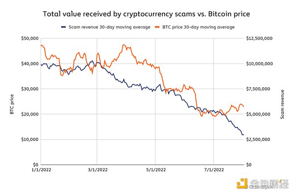 2022 年对于加密市场而言,是动荡的一年,5 月和 6 月所有的加密货币价格都出现了大幅下跌。虽然我们无法确定是否已经触底,但截止 8 月初,比特币价格在 20000 和 24000 之间相对稳定。本文将要分析市场低迷对加密货币的非法活动的影响。