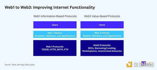 主要的有利因素之一是:政府没有监管协议,而是寻求监管应用程序,包括浏览器、网站和其他面向用户的软件等应用,通常被称为 "客户端"-- 用户通过它们访问网络。这条仍然管理网络的准则应该延伸到 Web3,这是互联网的进化,它将具有新的应用程序或客户端,如 webapps 和钱包,以及先进的去中心化协议,包括由区块链和智能合约实现的价值交换结算层。问题不在于是否应该有 Web3 监管。这个问题的答案是显而易见的。规则是必要的,也是受欢迎的。问题是,在技术堆栈的哪一层,Web3 监管是最有意义的。