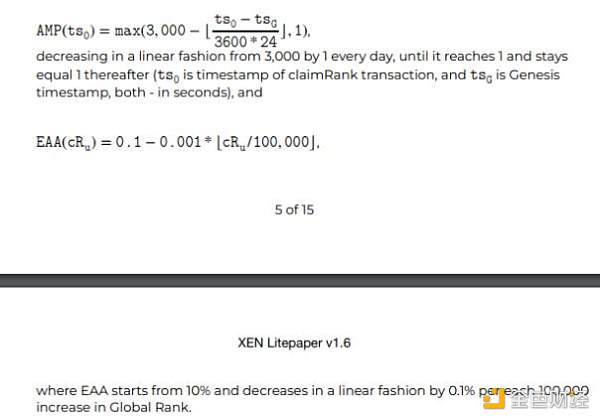 XEN铸币数量取决于:Crypto Rank (cRank), 等待时间T,奖励放大系数AMP(time-dependent Reward Amplifier),早期支持系数EAA(Early Adopter Amplification factor)。
