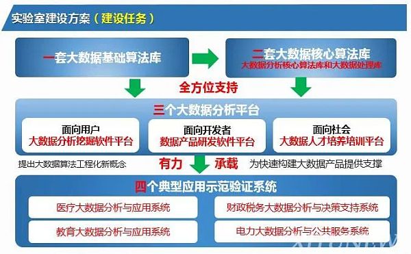 该实验室主要针对我国大数据分析与处理基础算法薄弱、大数据核心算法缺乏和大数据应用产品开发效率低等实际问题,开展异构数据预处理、大数据基本计算方法、大数据分析与处理核心算法、大数据算法测评等技术的研发和工程化,为大数据算法与分析技术的进步和产业发展提供实质性技术支撑。目前下设8个在研究中心,并取得一些列科研成果,努力推进数据技术的产业化,更好的为社会服务。