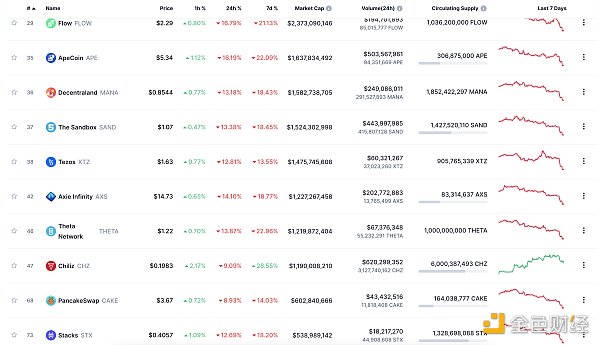 NFT总市值、市值排名前十项目 数据来源:Coinmarketcap