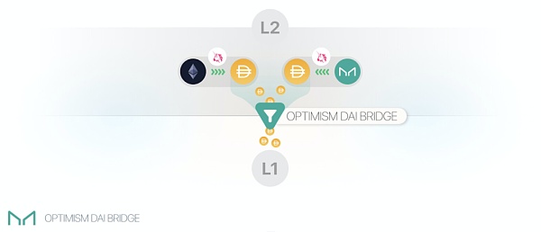与 MakerDAO 的 Dai 桥相关的 L1 Dai 近乎即时的转移有可能使 MakerDAO 成为 Optimism 的主要出口。L2 到 L1 的兑换将能够通过 Optimism Dai 桥路由交易来进行。因为 Uniswap V3 将使用 Optimism 进行扩展,代币将能够在 Uniswap 上交换为 L2 上的 oDAI,oDAI 交换为 L1 DAI,然后通过 L1 AMM 交换回 L1 代币。