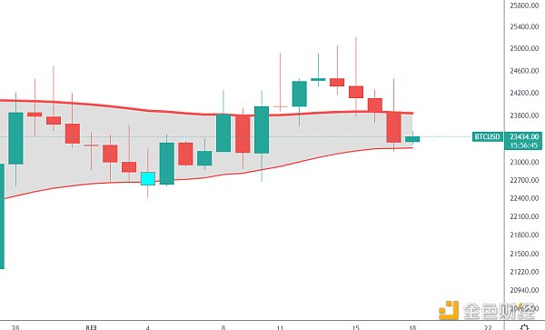 BTC周线依旧未有效跌破前期站上的趋势线23300支撑,日线也未破下轨支撑,上下轨仍保持逐步靠拢姿态,同时下方距离200周均线23000一带支撑也较近,200周均线在BTC各轮熊底扮演关键作用,本轮跌破又重新站上,前期也有跌破再站回的情况,同时下方附图指标线已从见红区域拉回至通道内部,前期这种走势均对应BTC历史上各轮熊底,2014年、2018年和2020年,除了减半年2020年直接V反,其余两次均是长时间的低位盘整,持续消磨持币者的信心和耐心后,然后发动新一轮牛市,所以目前BTC也可能已开始大底区域筑底走势,后续一旦有效跌破近期支撑带再次探底,大概率又将是中长线低吸的机会,而站稳不破后续就有再次上攻的机会。