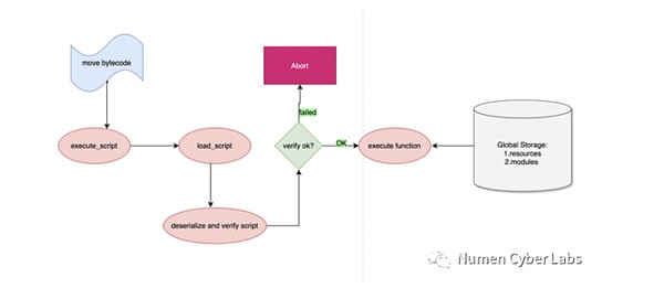 movevm 与evm虚拟机都一样,需要将源码编译成字节码,然后在虚拟机中执行,下图是整体的流程: