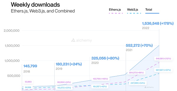 以太坊 SDK 安装每周新增150万个,同比增长178%;