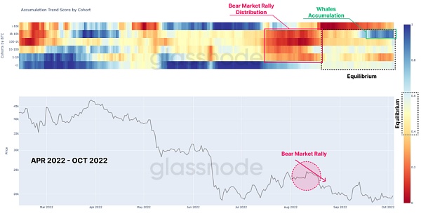 值得注意的是,当前市场走势在下破3万美元周期基线后,已经发生一系列类似于 2018-2019 年熊市的事件。在 2022 年初的整个多头投降过程中,持仓集中度趋势分数表明大型实体已经发生了显著的增持,并在近期这波涨到 2.45 万美元的熊市反弹中的退出流动性。