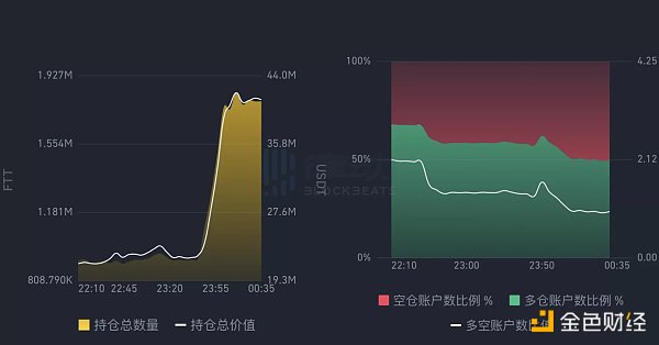 不到一天时间,FTT 价格受社区信息影响发生了剧烈波动。过去数小时内,FTTUSDT 永续合约在 Binance 上的交易量从 2000 万美元激增至 4000 万美元附近,多空争夺激烈。