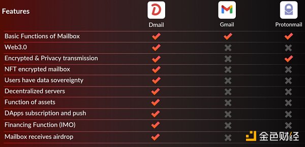 几个项目各有所长,也各有不足。目前进度最快、构思最符合 Web3 叙事的是 Dmail 和 Mail3。不难发现,作为强互动的社交协议,Web3 邮箱与 DID 概念的适配性极高,非常适合在之后作为链接不同协议的桥梁,就像在传统互联网中电子邮箱作为登录接口一样。而作为 DID,其首先需要具备的就是不可转移性以及高度的功能多样性。期待未来的项目方可以在当前项目的基础之上引入 SBT 系统,以确保邮箱地址不可转移;同时,将资产输送系统与钱包进行融合,打造出基于传统邮箱的基本功能、但完全适配于 Web3 语境的社交协议。