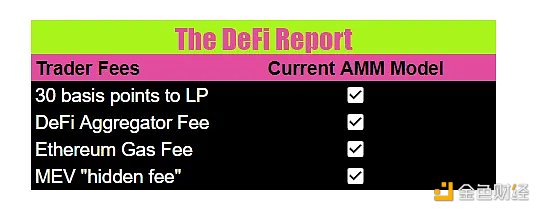 使用订单流支付,你可能会在收到交易(订单块)之前进行竞价拍卖,以填补交易。该交易所将出售订单流——类似于 Robinhood 和其他经纪商目前向大型做市商出售其订单流的方式。这意味着交易员将通过 DeFi 协议出售订单流而无需支付任何费用。这种模式将回归到我们在传统金融中看到的模式。为订单流支付的公司将订购对他们有利的交易(他们成为MEV),并直接向聚合器或订单簿协议(或钱包 MetaMask)支付小额费用,以提供流量。以下是收费结构的变化: