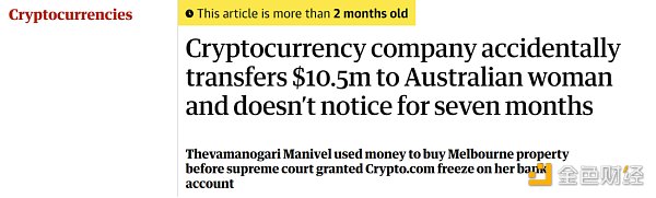顺带一提,这其实并不是 Crypto.com 第一回发生的“胖手指”失误。该所曾经错误将原本索取100美元退款的用户发送了 1050 万美元而成为全球新闻头条。更有趣的是,Crypto.com 在转账的 7 个月后才发现差错,而该用户在此期间已经高高兴兴地在墨尔本买了一套房产。