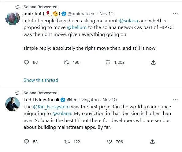 但更出乎意料的是,11 月 8 日,随着 FTX 事态的发展急转直下,尚未从会议圆满结束的喜悦和疲惫中缓过神来的 Solana 迅速被 FTX 的飓风裹挟进来,仓促又尴尬地应付着 FTX 暴雷带来次生危机,撇清与 FTX 的关系、拉人站台。