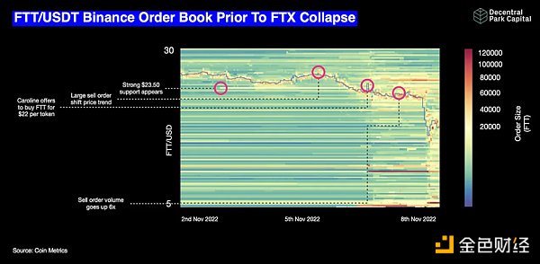 内容:2022 年 11 月 2 日至 8 日,币安上不同价格水平的 FTT/USD 订单规模。