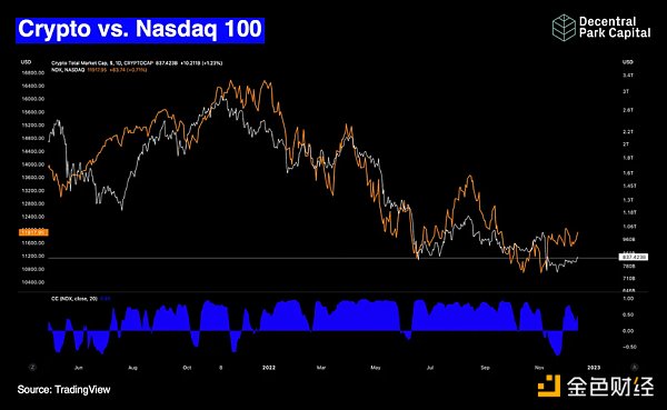 内容:在 2022 年的大部分时间里,加密货币市值与 NDQ 等成长型科技股指数呈正相关,但并不总是如此。