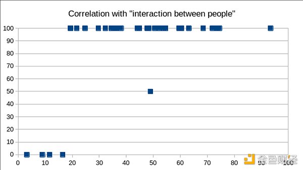 但事实证明,这种相关性具有误导性。“人与人之间的互动”几乎毫无疑问地成为一种制度的必要属性。0.57的相关性某种程度上表明了这一点,但它低估了关系的强度: