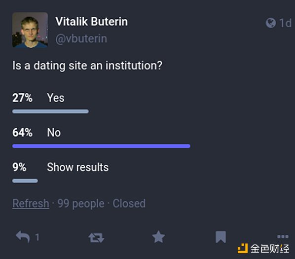 最令我惊讶的发现是,“独立于个体的角色”是迄今为止最弱的相关性。由民主国家运营的 Twitter 是最具制度性的,但通过付费治理计划运营的 Twitter 与由 Elon 直接运营的 Twitter一样是制度性的。独立于个人的角色增加了稳定性的保证,但以错误的方式独立于个人的角色让人感觉太陌生、随意,或者不像制度。约会网站比专业的婚介机构更独立于个人,但人们认为婚介机构更像机构。尝试高度角色驱动和机械可信中立的媒体,(例如这个精巧的设计,我实际上认为这真的很酷)只是感到陌生-也许是坏的,但也可能是好的,如果你发现今天的制度令人沮丧,你对可能的替代方案持开放态度。