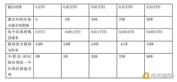 现在的问题是,如果验证者选择将 min-bid 参数设置为正数,他们需要放弃多少利润?