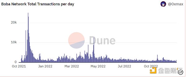 Boba 每日链上交易笔数 数据来源:dune:0xmax