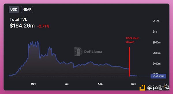 自 USN 关闭以来,Near 的 TVL 从 2.97 亿美元下降到目前的 1.64 亿美元,下降了 44.7%。USN V2 路线图包括计划用稳定币和非稳定币资产(如 NEAR)支持 USN。