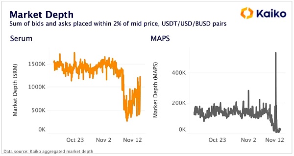 SRM 和 MAPS 的深度也出现了巨大下降,做市活动受到Alameda影响