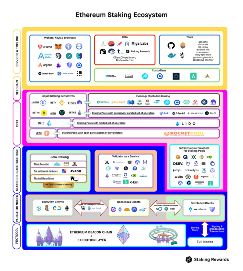 如果你想先了解 ETH Staking Ecosystem 的全貌,推荐阅读 Staking Rewards (A&T Capital Portfolio) 的详细报告《Mapping the Ethereum Staking Ecosystem》