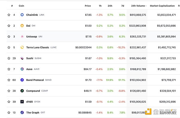 过去24小时去中心化交易所的交易量 数据来源:coingecko