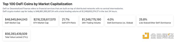 1、DeFi代币总市值:469.45亿美元