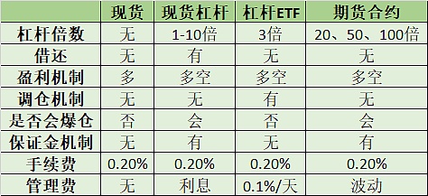 6.保证金机制:现货和杠杆ETF不需要保证金,现货杠杆以杠杆账户中的资产作为保证金,合约以合约账户中的资产作为保证金。
