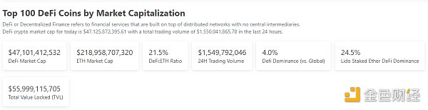 1、DeFi代币总市值:471.01亿美元