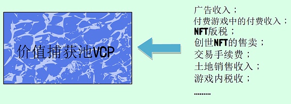 价值捕获池(Value Capture Pool)的资金来源是多种多样的,可以由设计者自由组合,例如:传统“Free to Play”游戏中的广告收入、“付费”游戏中玩家支付给项目方的费用、区块链游戏中的版税等等。