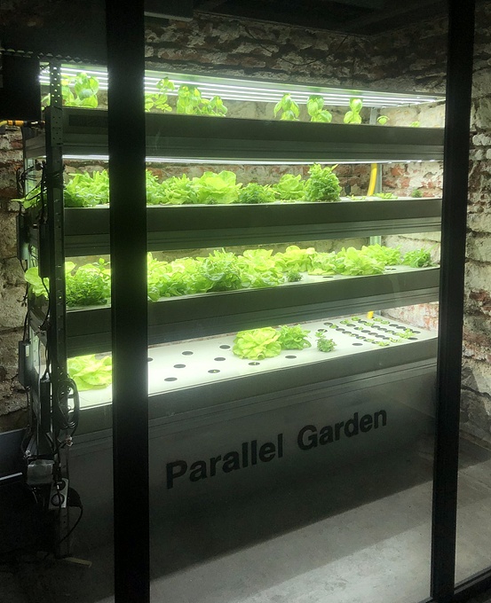 记者:在Parallel Polis的地下,我们可以找到你们的水培架原型,在Bistro 8餐厅,有一个适合餐厅运营的垂直水培架。你们是否会生产家用标准化系统呢?
