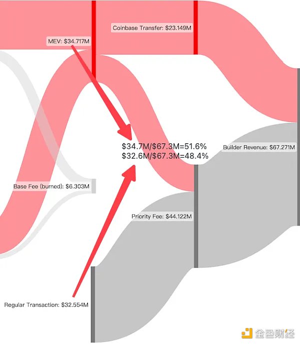 MEV占构建者收入的51.6%,其余48.4%来自普通交易支付的优先费用。