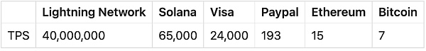 闪电网络的TPS是目前区块链所有扩容方案中最高的,满足了目前所有的支付场景需求。