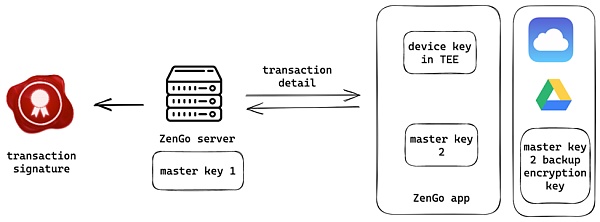 为了签署一项交易,ZenGo应用程序与ZenGo服务器进行了一系列的交互。在交互过程中,ZenGo使用其开源的双方签名解决方案和用户密钥分片来生成双方签名。然后,ZenGo服务器再进一步完成签名并广播交易。这个过程中的所有请求都有时间戳和TEE中的签名以保持信息的完整性和不可重放性。