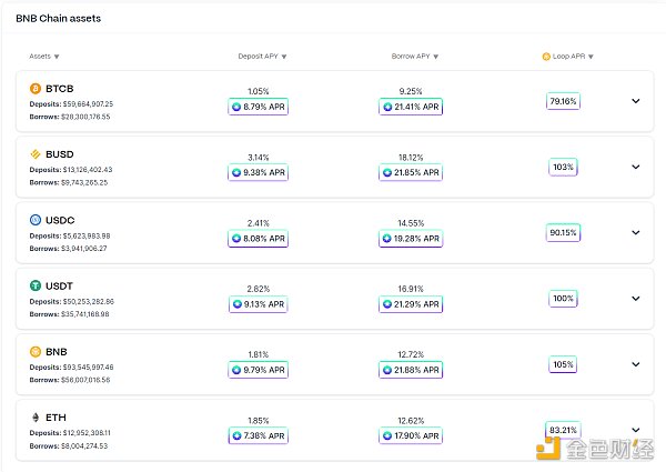 该应用程序在Arbitrum和BNB链上运行,你目前可以借入/借出以下资产。
