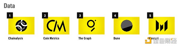 此榜单由加密货币中的八个类别组成——TradFi、CeFi、NFT、VC、DATA、Infrastructure、Protocol、DeFi,提供每个类别中前五名公司的排名列表。
