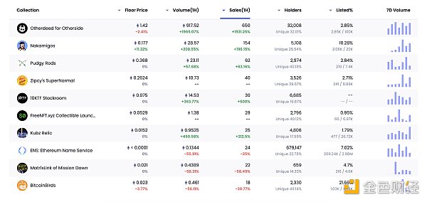 24小时内销售前十的NFT 数据来源:NFTGO