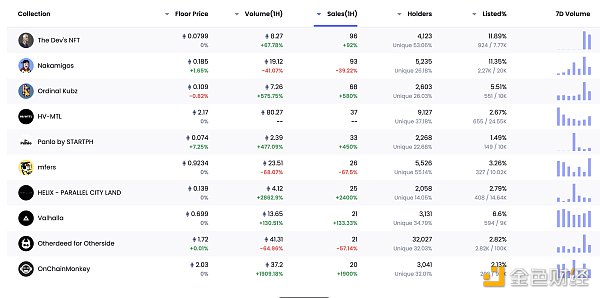 24小时NFT交易量、交易量前十项目 数据来源:Coinmarketcap