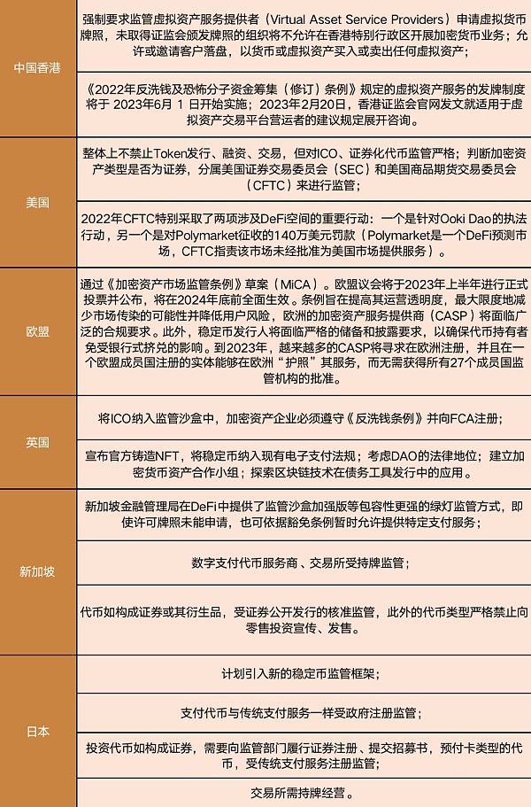 在全球经济增长普遍放缓的当下,选择布局加密行业,成为全球加密资产中心已经是许多国家和地区在2023年努力竞争的方向。欧盟 MiCA 和 TFR 监管法案将开始实施,美国的加密监管框架将逐渐完善和立法,更多国家的加密监管政策也将陆续落地,各国内部将出现明确统一的加密监管制度,国际的监管合作也会不断加强,这将为监管加密资产提供必要的制度和执法基础。