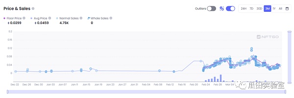 我们韭菜嘛,还是看价格。今年 2 月份开始,看到项目方又开始有些频繁的动作,价格波动得厉害,于是开始深入研究起了这个项目。最近两周项目 Pass 卡价格上下起伏,从 2 月份启动前到 3 月初,Pass 卡地板价从 0.01 e 拉到过接近 0.1 e,但最近价格又有下跌,可能也跟 Blur 开始取消双倍积分,并清理庄家有关。下个月项目会 Mint 土地 NFT,并正式开放游戏公测,不知道还会不会有一波行情,值得进一步关注。