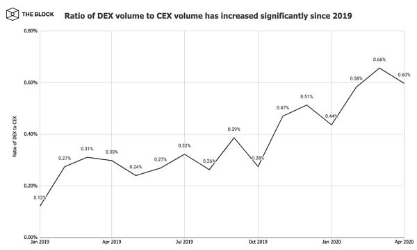 激增的聊天热度,必定意味着激增的交易量,和相应的币价飙涨,KNC与Bancor等龙头型DEX今年的表现都相当亮眼。而DEX的整体交易占比,也是从年初的0.1%短短几个月翻5倍到了0.6%。