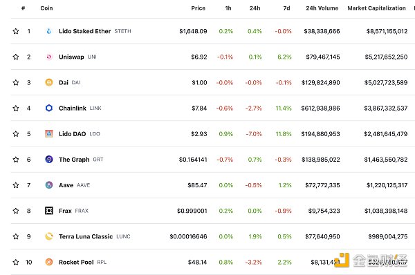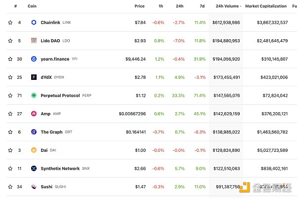 DeFi项目锁定资产前十排名及锁仓量 数据来源:defillama